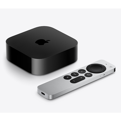 Apple TV 4K (3rd generation) brings the best of TV together with your favorite Apple devices and services — including the new FaceTime experience on TV.Footnote With 4K Dolby Vision, HDR10+, and Dolby Atmos, it delivers a truly cinematic experience to your screen.Footnote You can enjoy content from Apple TV+, Apple Music, Apple Arcade, Apple Fitness+, and Photos, as well as Prime Video, Netflix, and Disney+, and live channels from Hulu, YouTube TV, and Sling TV.FootnoteThe included Siri Remote (3rd generation) with USB-C makes it easy to control Apple TV 4K using the touch-enabled clickpad or just your voice — and if it goes missing, you can now find it fast with your iPhone.Footnote Apple TV 4K also works as a smart home hub, letting you connect and control all your favorite smart home accessories.FootnoteApple TV 4K (Wi-Fi) comes equipped with 64GB of storage, and Apple TV 4K (Wi-Fi + Ethernet) comes with 128GB of storage and Thread networking support.Footnote
