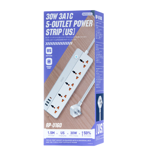 Remax RU-160 30W 3A+1C 5-Outlet Power Strip