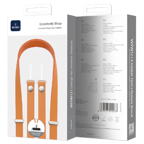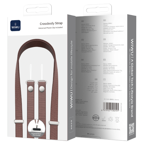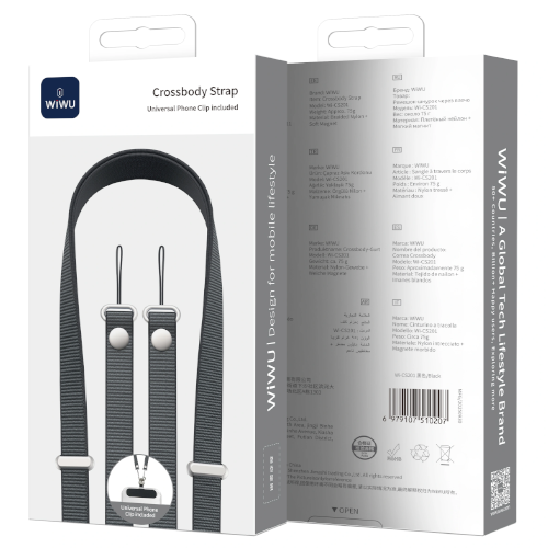 Go hands-free in style. The WiWU Crossbody Strap is meticulously designed for the modern, on-the-go lifestyle. Crafted from a durable, high-density braided nylon, it feels incredibly soft and comfortable against your skin. The length is fully adjustable from 55cm to 105cm with two sleek, double-sided telescopic buckles, allowing you to wear it as a crossbody, shoulder strap, or neck lanyard. Its standout feature is the ingenious magnetic tidy-strap system: built-in soft magnets keep the overlapping layers of the strap neatly aligned, ensuring a clean, elegant look at all times. The quick-release buckle features a 360° universal rotating metal shaft for ultimate flexibility, while the included universal anchor patch slips inside your existing case for a secure connection that won't obstruct your charging port.