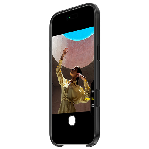 This case works seamlessly with Camera Control. It features a sapphire crystal coupled to a conductive layer to communicate finger movements to Camera Control.